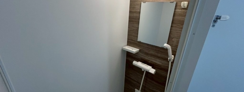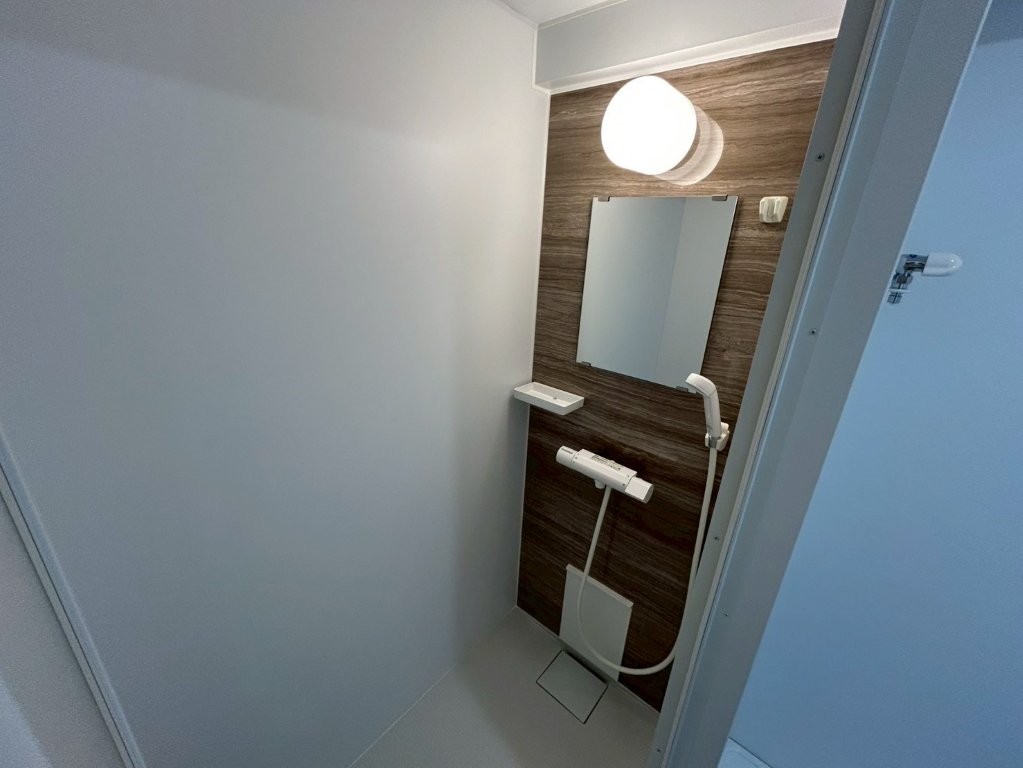 | 施工内容 | 既存3点ユニット撤去、配管調整、シャワールーム新設、壁パネル施工、床防水処理、照明交換 |