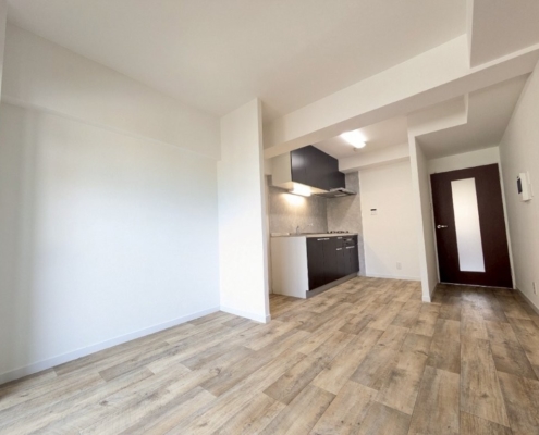 | 施工内容 | 床材貼り替え(フロアタイル)、壁・天井クロス張り替え、システムキッチン交換、建具交換 |