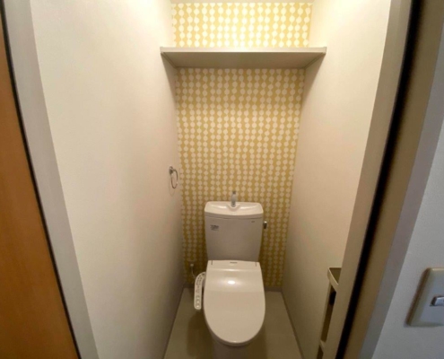 クラシアス2023-12-17 09:09:262023-12-17 09:11:18アクセントクロスでスッキリ広々としたトイレ空間に|葛飾区奥戸の賃貸アパートにてトイレリフォーム