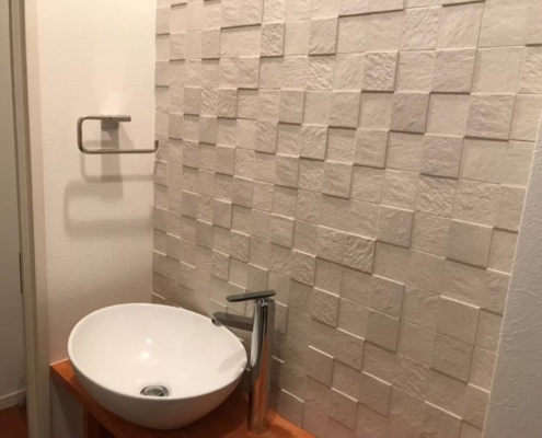 | 施工内容 | アクセントタイル張り替え、壁・天井のクロス張り替え、洗面ボウル設置、その他雑工事 |