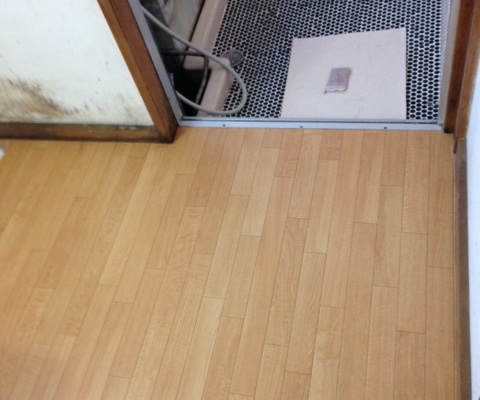 クラシアス2024-01-29 19:08:302024-01-29 19:10:21度重なる塗れ足で劣化した風呂場入口の床を張り替え|東京都葛飾柴又の賃貸アパートにて内装リフォーム